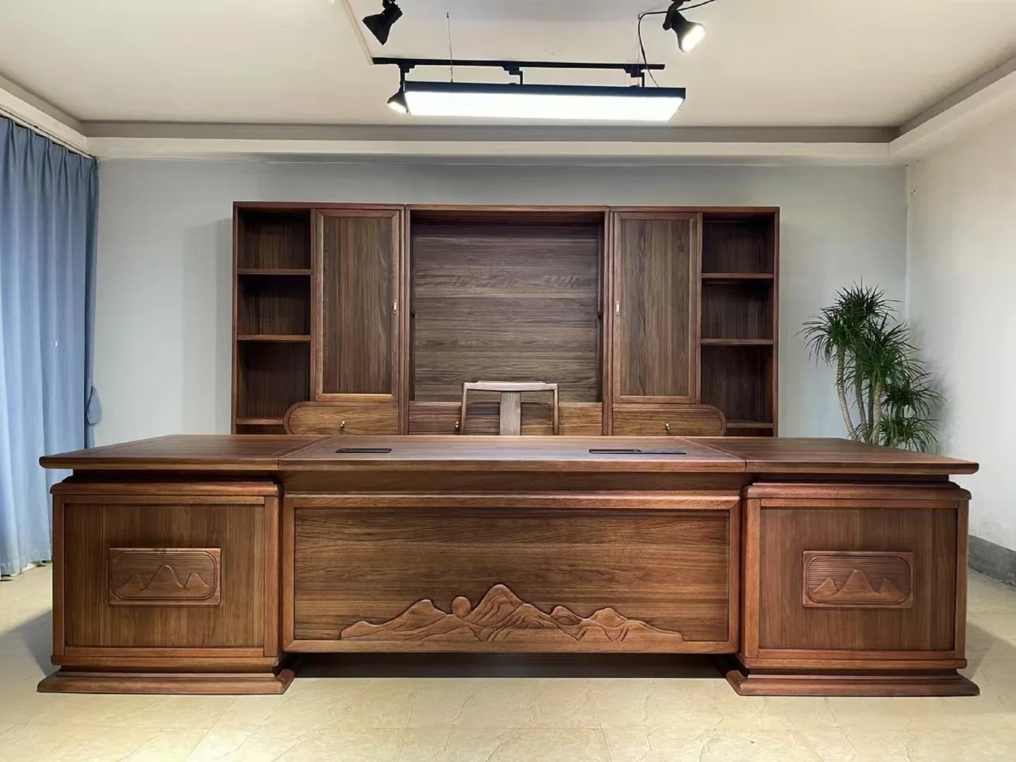 Bàn giám đốc truyền thống thường được làm từ gỗ tự nhiên cao cấp như gỗ óc chó, gỗ gõ đỏ, hoặc xoan đào với màu sắc trầm ấm như nâu sẫm, cánh gián hay nâu đỏ. Thiết kế bàn mang phong cách vững chãi, vuông vức, với các đường nét chạm khắc tinh xảo, hoa văn cổ điển hoặc họa tiết truyền thống phương Đông. Mặt bàn rộng, chân bàn to bản, mang lại cảm giác quyền lực và uy nghiêm – phù hợp với những lãnh đạo đề cao giá trị truyền thống, sự ổn định và tính phong thủy.