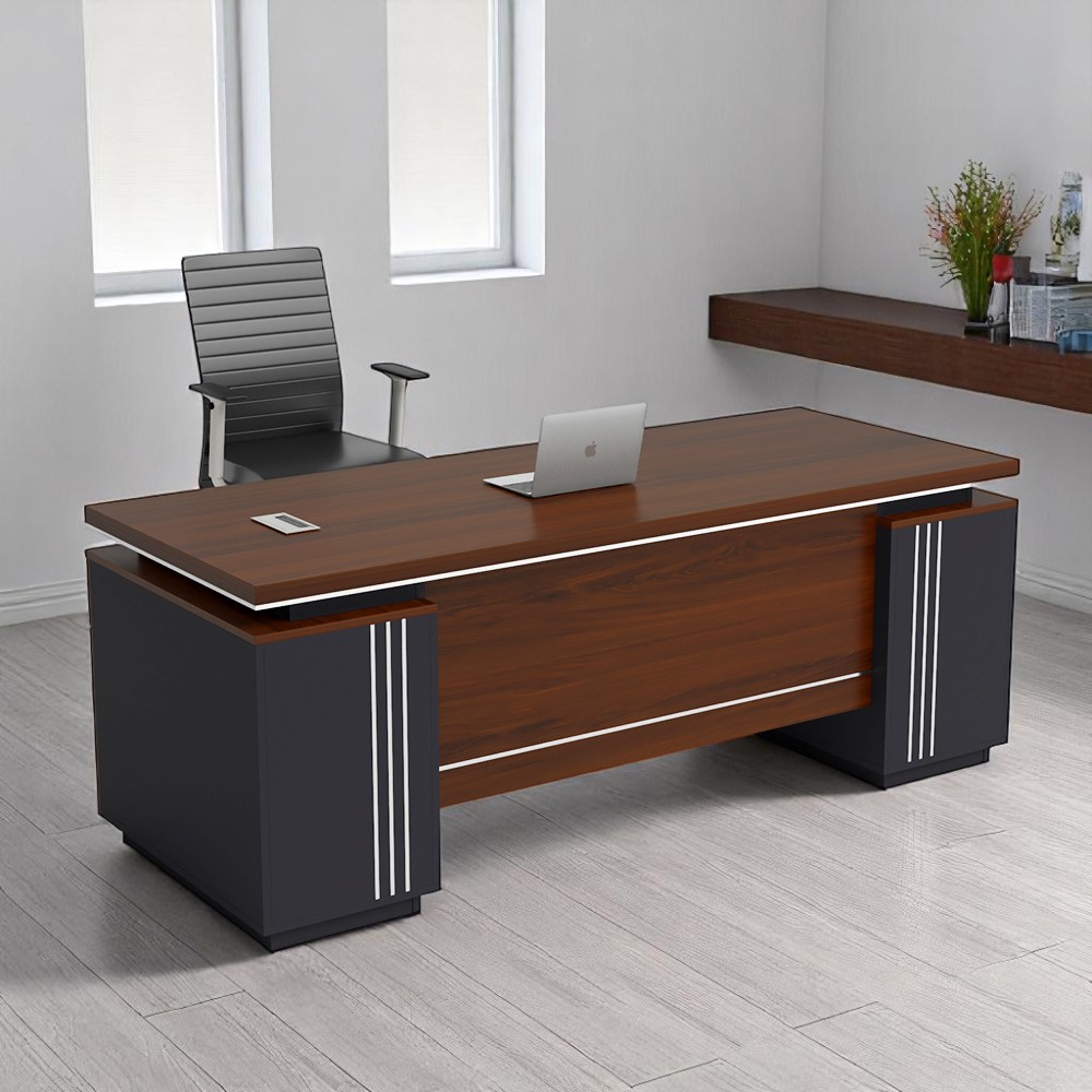 Bàn giám đốc dài 2m là lựa chọn phổ biến cho các giám đốc cấp cao hoặc người cần thể hiện phong cách lãnh đạo mạnh mẽ. Với chiều dài rộng rãi, bàn không chỉ tạo cảm giác uy quyền mà còn mang đến sự thoải mái trong quá trình làm việc. Mẫu bàn giám đốc 2m thường được thiết kế kết hợp với tủ phụ, mặt bàn lớn, chất liệu cao cấp như gỗ tự nhiên hoặc veneer.