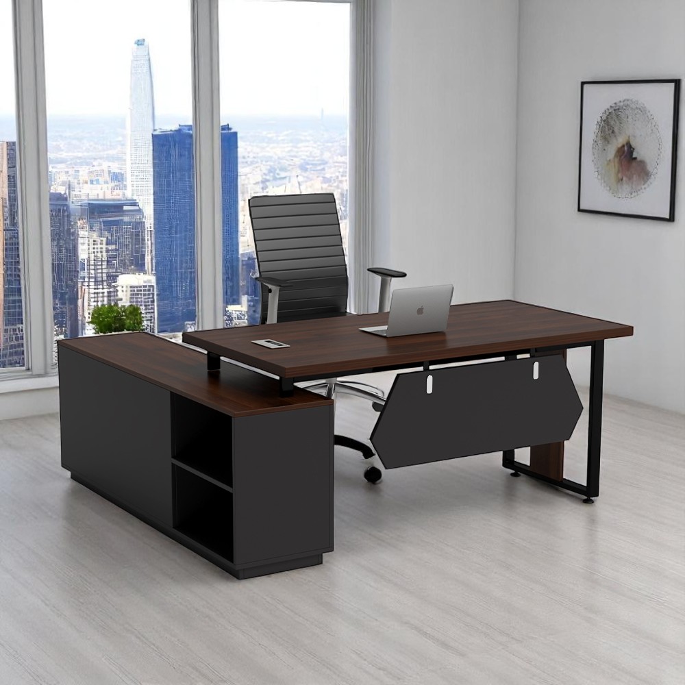 Với thiết kế thông minh, bàn giám đốc chữ L giúp tối ưu không gian làm việc bằng cách mở rộng diện tích mặt bàn và tạo thêm không gian lưu trữ. Mẫu bàn này thường đi kèm hộc tủ phụ, giúp lưu trữ hồ sơ gọn gàng. Khi sử dụng cùng ghế giám đốc xoay linh hoạt, bộ bàn ghế giám đốc chữ L mang lại sự thoải mái và chuyên nghiệp trong quá trình làm việc.