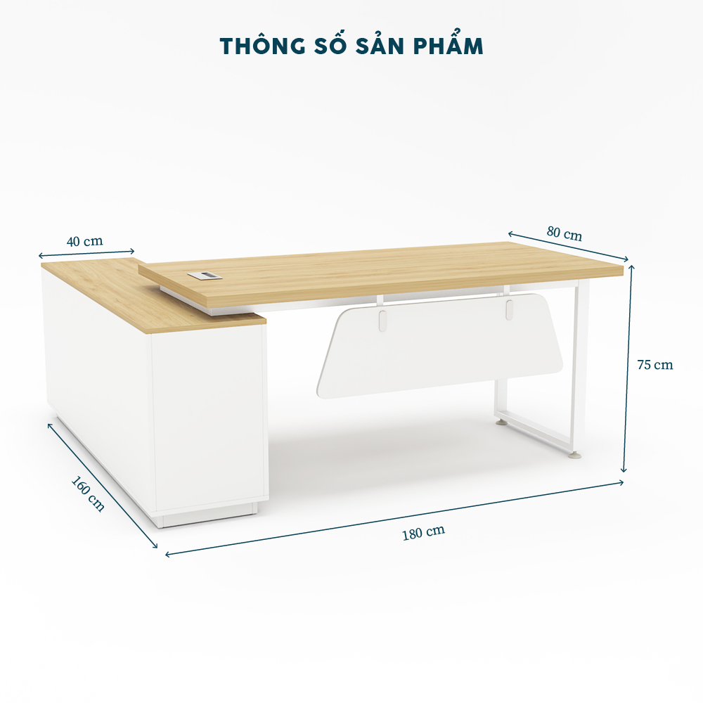 Chiếc bàn được hoàn thiện bằng Gỗ MDF E1 cao cấp, lý tưởng cho những không gian văn phòng mang hơi thở hiện đại. Với khả năng chống ẩm, chống trầy hiệu quả cùng bề mặt nhẵn mịn, sản phẩm dễ dàng hòa vào tổng thể không gian mà vẫn nổi bật bởi sự tinh tế.