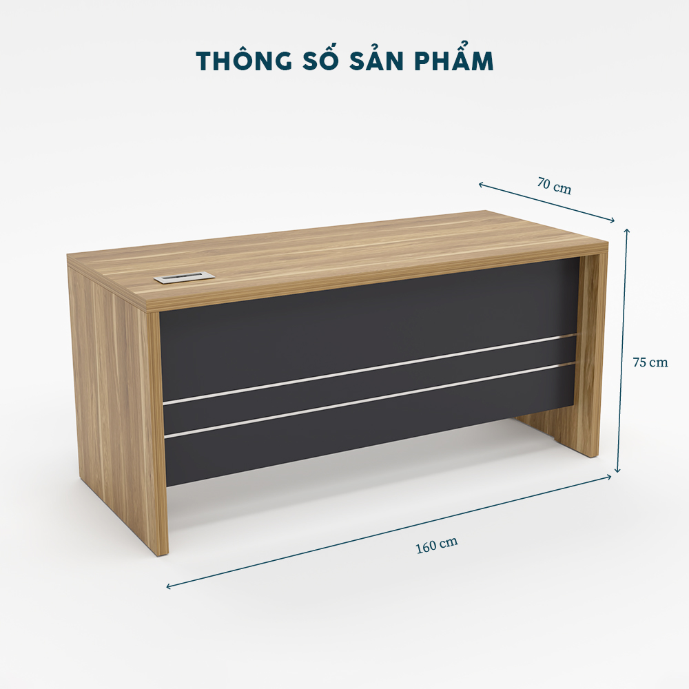 Sở hữu kích thước nhỏ gọn với chiều dài 160cm, bàn phù hợp cho các không gian văn phòng vừa và nhỏ nhưng vẫn đảm bảo sự thoải mái khi làm việc. Thiết kế đường nét tối giản nhưng không kém phần sang trọng giúp sản phẩm dễ dàng hòa hợp với mọi phong cách nội thất.