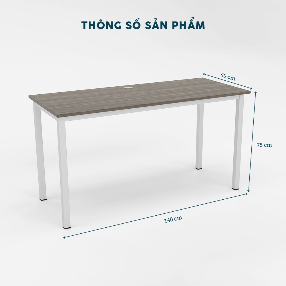 - Mặt bàn rộng rãi : Diện tích (140 cm x 60 cm) đủ chỗ cho máy tính, tài liệu và vật dụng, tích hợp lỗi trực tuyến để không gian gọn gàng.
