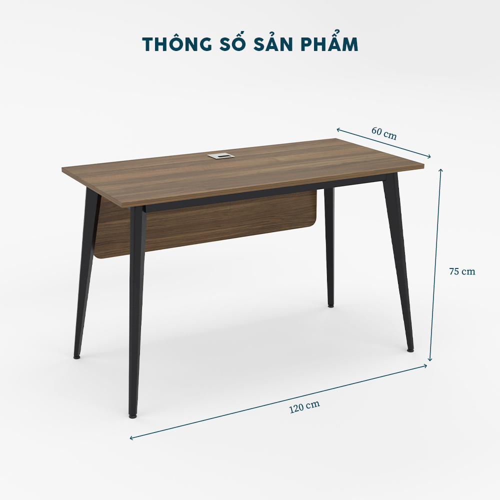 Mặt bàn rộng rãi: Diện tích (120 cm x 60 cm) đủ chỗ cho máy tính, tài liệu, tích hợp lỗ luồn dây gọn gàng.