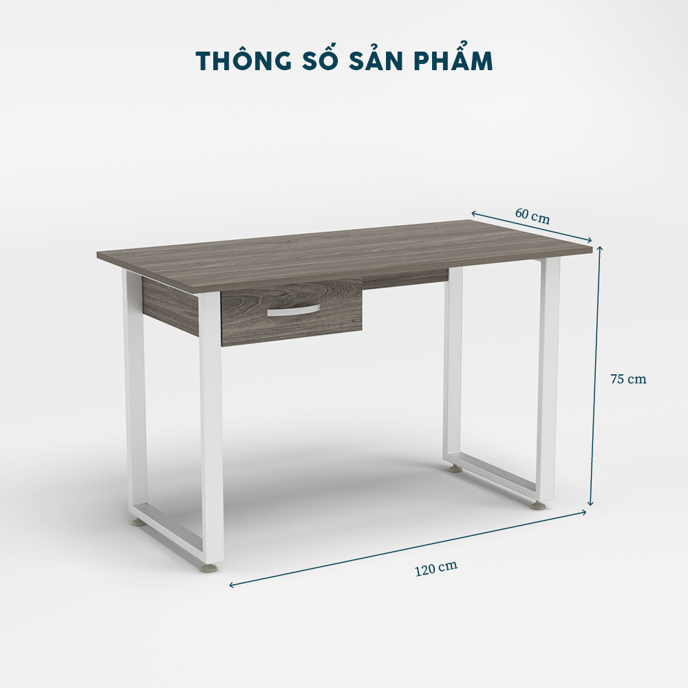 Mặt bàn rộng rãi: Diện tích (120 cm x 60 cm) đủ chỗ cho máy tính, tài liệu, tích hợp lỗ luồn dây gọn gàng.
