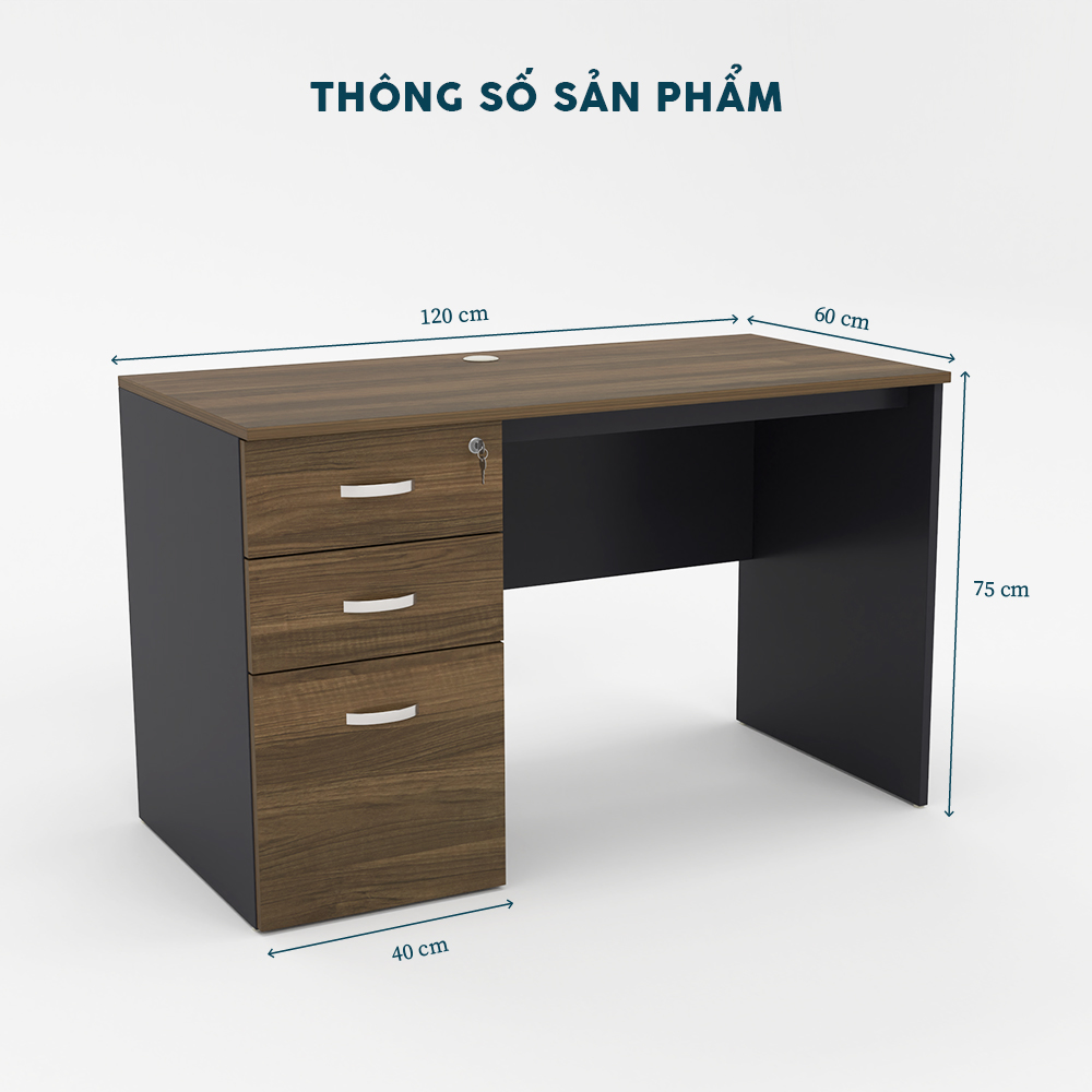 - Mặt bàn rộng vừa đủ : Diện tích (120 cm x 60 cm) phù hợp để đặt máy tính, tài liệu và vật dụng cần thiết, tích hợp lỗi luồng dây để không gian luôn luôn Sản phẩm.