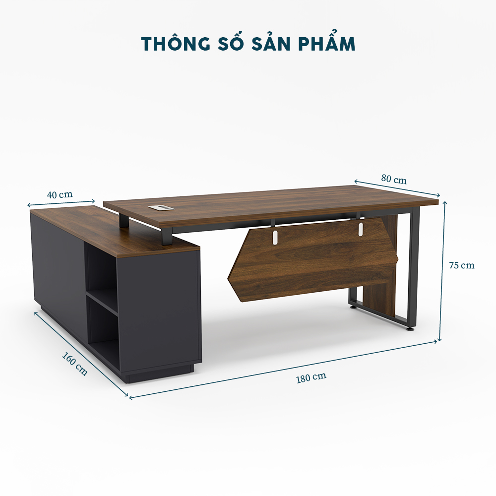 Với chất liệu Gỗ MDF E1 cao cấp được xử lý kỹ lưỡng, sản phẩm không chỉ đảm bảo độ bền vượt trội mà còn toát lên vẻ sang trọng, hiện đại. Bề mặt mịn màng, dễ vệ sinh giúp duy trì hình thức luôn mới mẻ, thể hiện phong cách làm việc chuyên nghiệp của người lãnh đạo.
