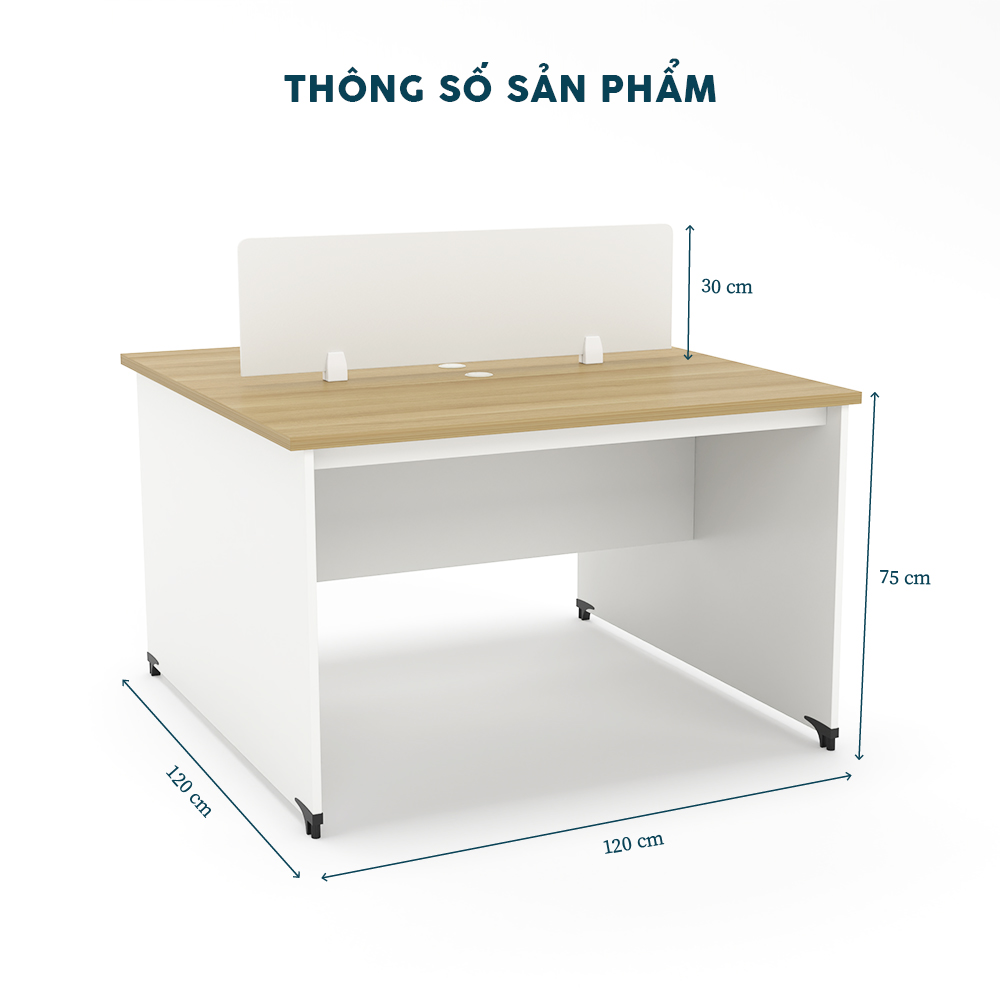 Với kích thước 120cm x 120cm, Cụm Bàn Làm Việc 2 Người CBNVY04-1212 cung cấp không gian làm việc thoáng đãng cho 2 người. Thiết kế thông minh với vách ngăn cao 30 cm giúp tối ưu hóa diện tích, mang lại sự tiện lợi và chuyên nghiệp.