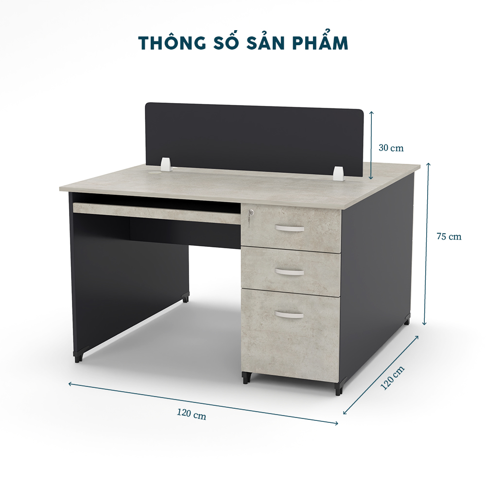 - Không gian làm việc cho 2 người: Thiết kế thông minh với kích thước phù hợp, giúp tiết kiệm diện tích mà vẫn đảm bảo sự thoải mái và riêng tư cho người dùng.