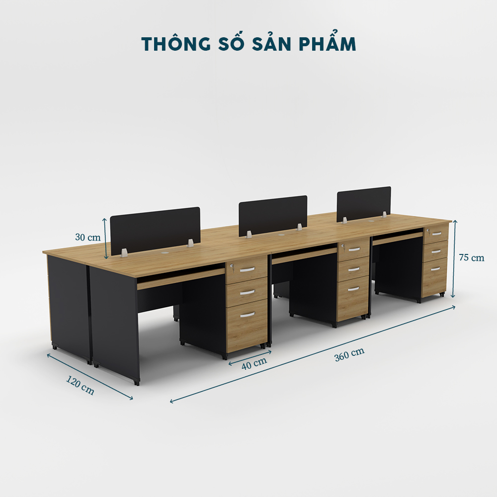 Không gian làm việc rộng rãi cho 6 người: Thiết kế bàn cung cấp diện tích thoải mái, đảm bảo mỗi cá nhân có không gian riêng tư, tránh cảm giác chật chội khi làm việc.