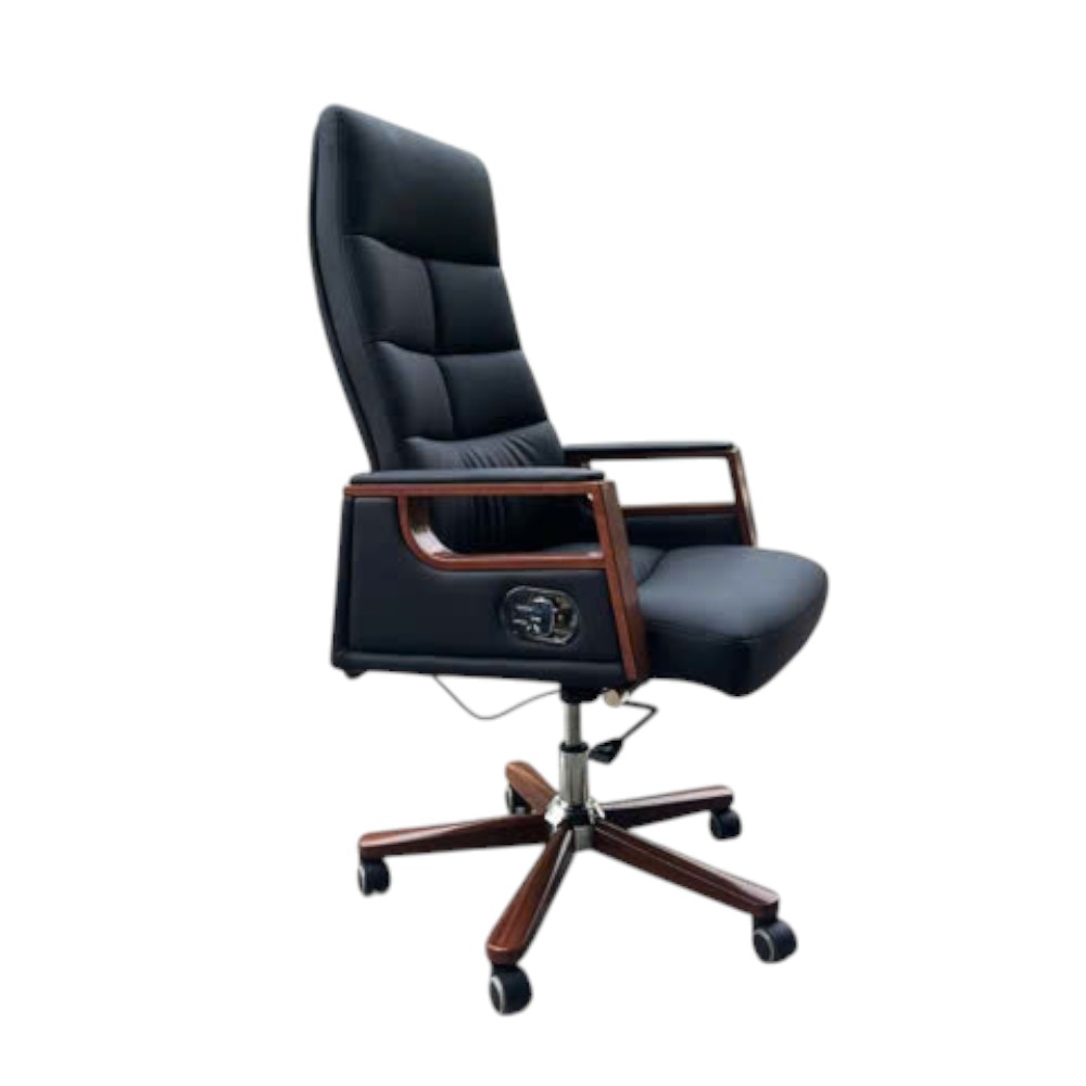 Toàn bộ bề mặt ghế được bọc da PU chất lượng cao, mang lại cảm giác mềm mại và thoải mái tối đa khi sử dụng. Chất liệu da này không chỉ có độ bền vượt trội, chống bám bẩn mà còn rất dễ vệ sinh, giúp sản phẩm luôn giữ được vẻ ngoài sạch sẽ và như mới. Tông màu đen mạnh mẽ còn tạo điểm nhấn sang trọng, hoàn hảo cho mọi phong cách không gian làm việc.