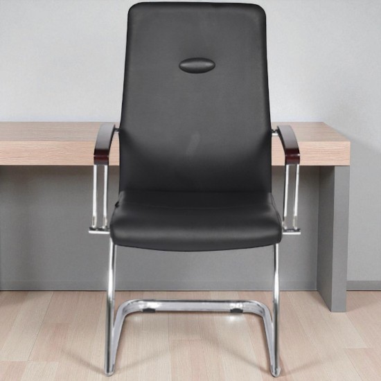 Đệm tựa bọc da PVC (tại phần tiếp xúc), tay gỗ sơn PU, chân thép mạ |