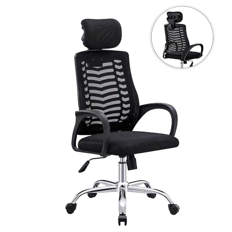 Lưng lưới mesh, có tựa đầu, tay vịn nhựa, chân chrome |