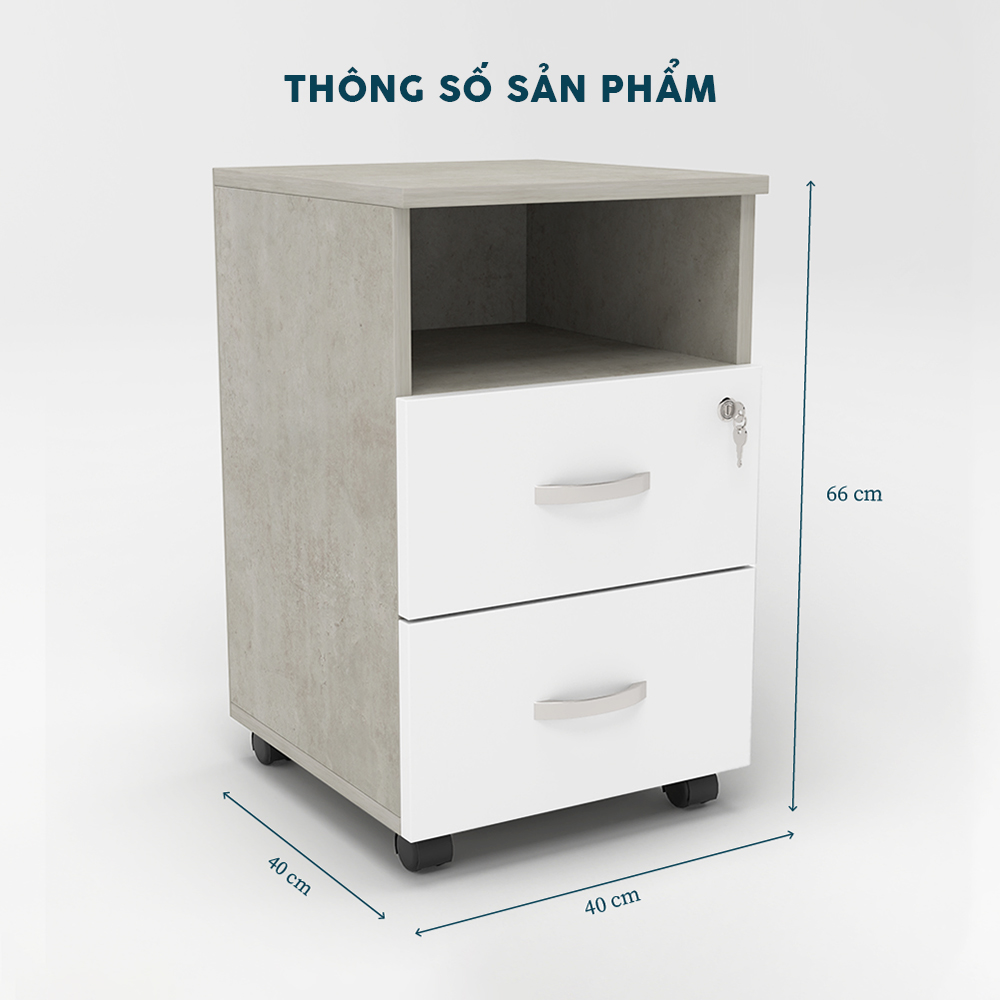 Với kích thước 40cm x 40cm x 66cm, Học Tủ Di Động HTY08 cung cấp không gian lưu trữ rộng rãi với hai ngăn kéo khóa và một kệ mở, phù hợp để sắp xếp sách vở, tài liệu hoặc đồ dùng cá nhân. Thiết kế bánh xe giúp di chuyển dễ dàng, tối ưu hóa không gian sử dụng.