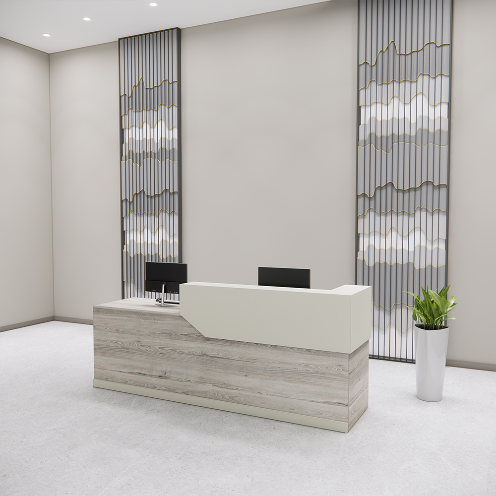 Quầy lễ tân YOTA QLTY19-20 sở hữu thiết kế tối giản nhưng không kém phần sang trọng. Sản phẩm được thiết kế với các đường nét hài hòa, tạo sự tinh tế cho không gian lễ tân. Tông màu trung tính hiện đại giúp quầy dễ dàng phù hợp với nhiều phong cách nội thất văn phòng, từ trẻ trung năng động đến chuyên nghiệp, lịch lãm.