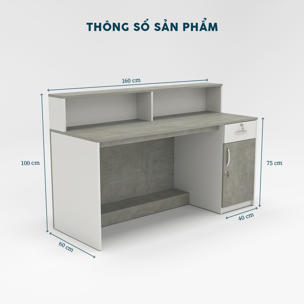 Quầy lễ tân YOTA QLTY27-16 sở hữu thiết kế thông minh với hệ thống ngăn chứa và không gian lưu trữ rộng rãi, giúp nhân viên lễ tân dễ dàng sắp xếp tài liệu và vật dụng cần thiết một cách khoa học, ngăn nắp. Mặt quầy đủ rộng để bố trí các thiết bị văn phòng như máy tính, điện thoại mà không gây cảm giác chật chội. Thiết kế này tối ưu công năng sử dụng, mang lại sự tiện lợi và hiệu quả trong công việc hàng ngày.