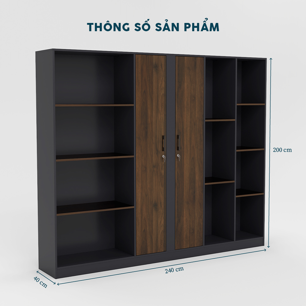 Tủ giám đốc YOTA TGDY022 được trang bị các ngăn lưu trữ rộng rãi, hỗ trợ sắp xếp tài liệu, hồ sơ và đồ dùng văn phòng một cách khoa học. Các kệ trang trí được bố trí hợp lý, là nơi lý tưởng để trưng bày các vật phẩm phong thủy, sách hoặc kỷ niệm chương, tạo sự gọn gàng và điểm nhấn thẩm mỹ cho không gian.