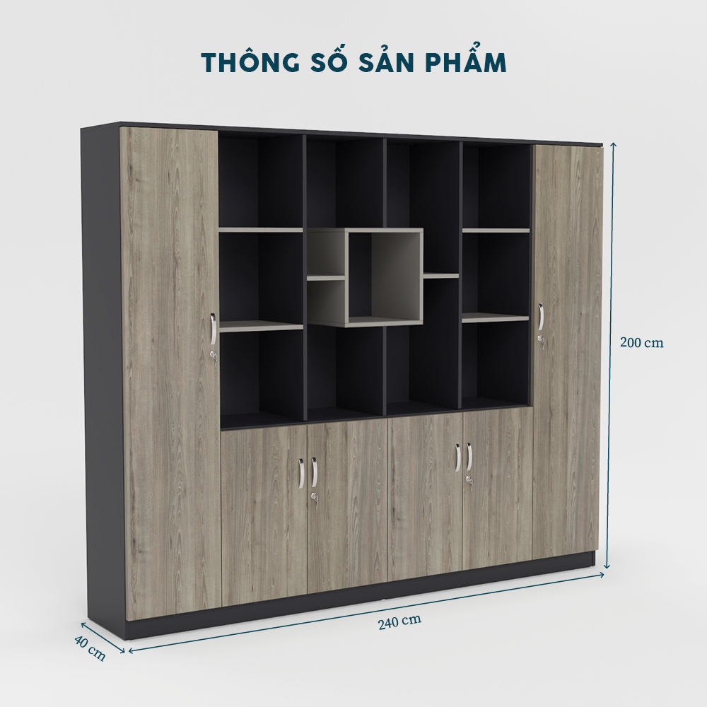 Sản phẩm sở hữu thiết kế đồng bộ với nhiều ngăn lưu trữ rộng rãi, giúp tối ưu hóa không gian sắp xếp hồ sơ và tài liệu một cách khoa học. Các ngăn tủ được bố trí hợp lý, đồng thời tích hợp khóa bảo mật, đảm bảo an toàn tuyệt đối cho các tài liệu quan trọng. Tổng thể thiết kế và công năng của tủ đều được tối ưu nhằm hỗ trợ hiệu quả nhất cho công việc của giám đốc.