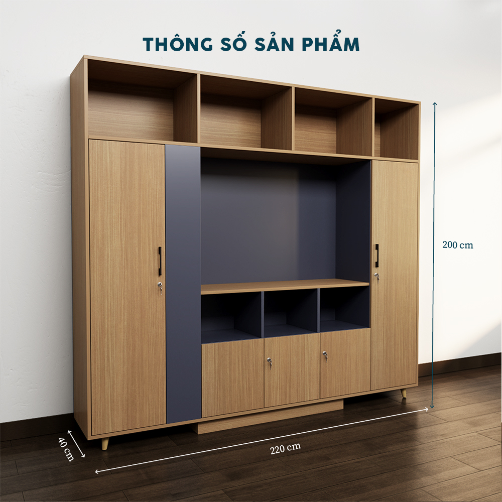 Với kích thước 40cm x 200cm x 220cm, Tủ Giám Đốc TGDY006 cung cấp không gian rộng rãi cho việc lưu trữ tài liệu, hồ sơ hoặc vật dụng cá nhân. Thiết kế thông minh với hệ thống ngăn kéo và cửa kính, giúp tối ưu hóa không gian lưu trữ, tạo sự tiện lợi và chuyên nghiệp.