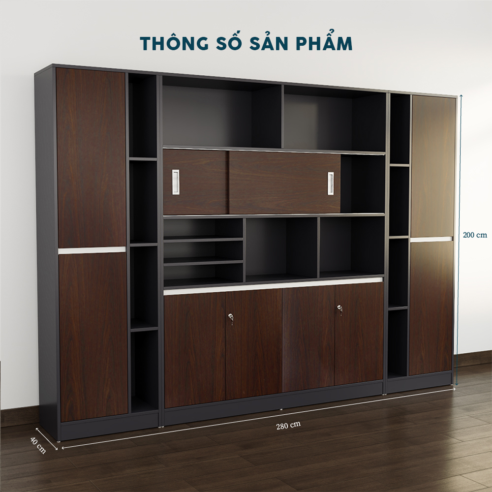 Khám phá Tủ Giám Đốc TGDY015 – kiệt tác siêu rộng 2.8 mét, nơi cửa lùa trung tâm kết hợp bốn khoang phụ cao tầng tạo nên hệ thống lưu trữ “không giới hạn”, biến phòng lãnh đạo thành trung tâm quyền lực thực thụ với tổ chức hoàn hảo và thẩm mỹ đỉnh cao.