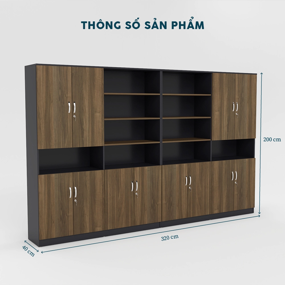 - Kích thước ấn tượng: Với số đo (Sâu 40 cm x Rộng 320 cm x Cao 200 cm), chiếc tủ mang đến sự hiện diện nổi bật trong phòng giám đốc, vừa là điểm nhấn nội thất, vừa cung cấp không gian lưu trữ rộng rãi cho hồ sơ, tài liệu và vật dụng cá nhân.
