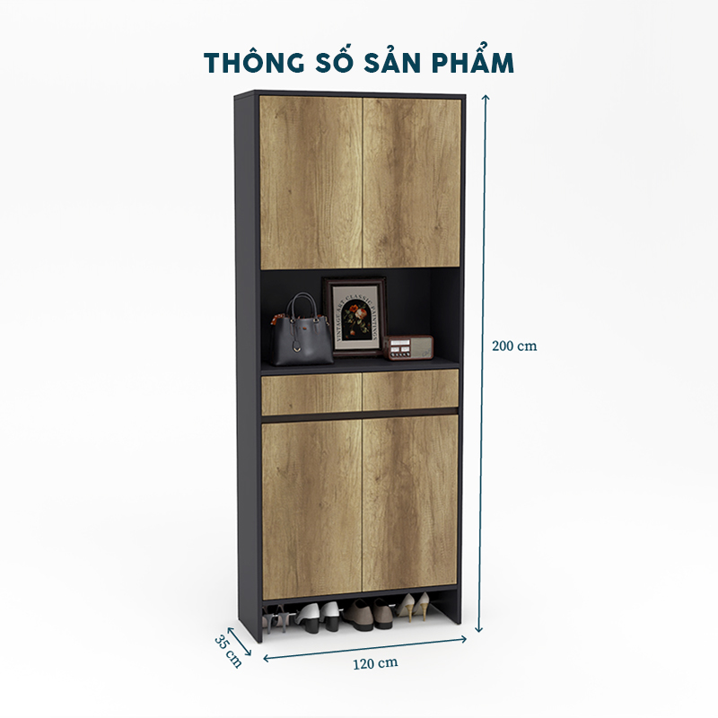 Thiết kế cao, đứng, giúp tận dụng tối đa không gian theo chiều dọc, phù hợp cho căn hộ nhỏ, nhà phố hoặc khu vực ra vào có diện tích hạn chế.