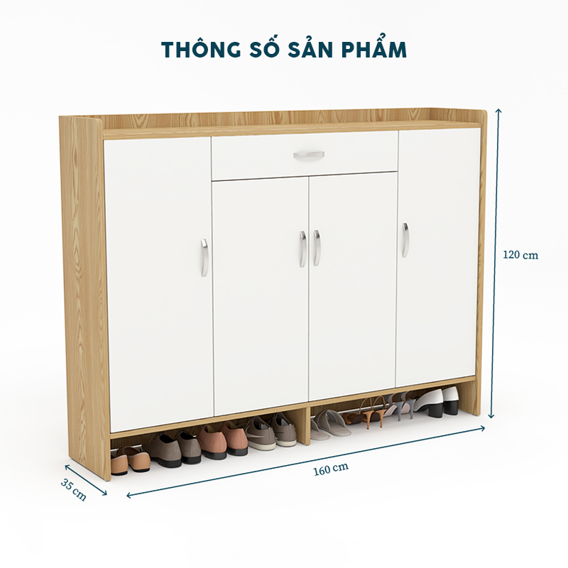 Bốn cánh tủ phía dưới: Không gian rộng rãi bên trong được chia thành các tầng chứa, phù hợp để sắp xếp giày dép cho cả gia đình, dễ phân loại theo mùa hoặc từng thành viên.