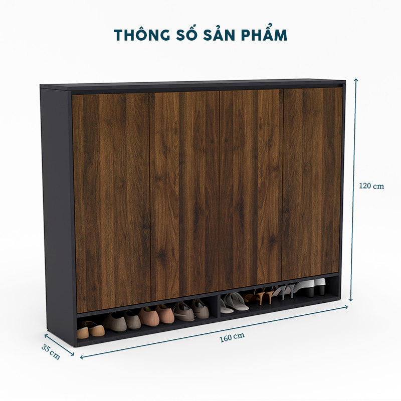 Chiều dài lên đến 160cm, cao 120cm và sâu 35cm, sản phẩm cung cấp không gian cất trữ giày dép cực kỳ thoải mái, đáp ứng cả những gia đình nhiều thành viên.