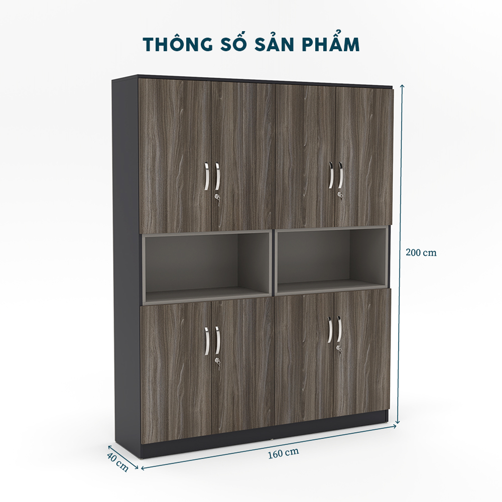 Tủ THSY016 được tích hợp ba ngăn tủ khóa bảo mật và kệ mở đa năng, hỗ trợ sắp xếp tài liệu và vật dụng văn phòng một cách khoa học. Mặt kệ rộng rãi cho phép đặt thêm thiết bị cần thiết, với độ cao 130cm được điều chỉnh để sử dụng thoải mái và tiếp cận thuận tiện.