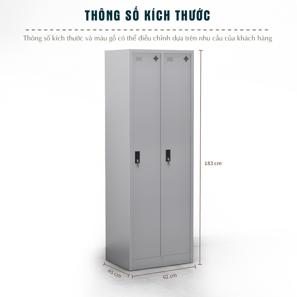 Thiết kế gồm 2 cánh cửa có khóa, không gian bên trong được phân chia khoa học, giúp sắp xếp hồ sơ, tài liệu và đồ dùng cá nhân gọn gàng, ngăn nắp.
